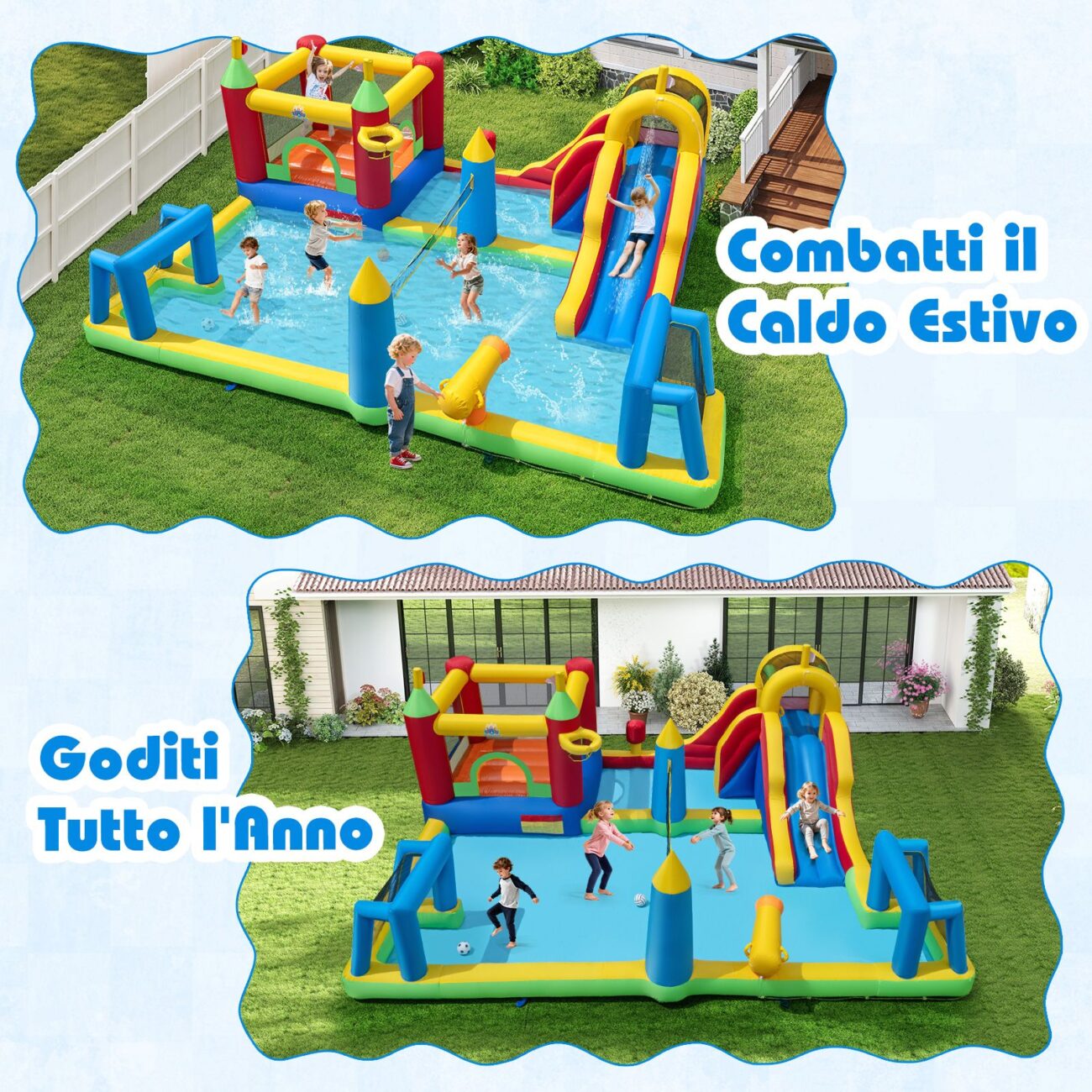 Mega Sport&Fun è il gonfiabile perfetto per trasformare ogni festa in un vero parco giochi: scivolo da 85cm, arrampicata, area salto, canestro da basket e porte da calcio rete pallavolo in un’unica struttura super colorata.